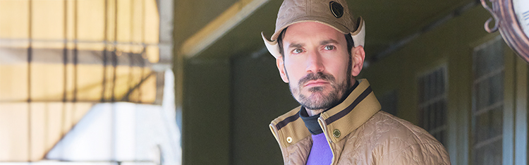 【メンズ】フロッキープリント長袖モックネック