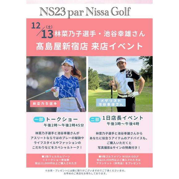 Nissa Golf では、林菜乃子プロと、オリンピア池谷幸雄さんによる、豪華なトークショーを開催しました。